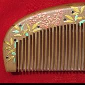 近年は「仏壇以外にも蒔絵を描いて下さい」の勧めもあり、櫛、櫛置き台、ぐい呑みグラス、ワインタンブラー、ピアス、イヤリング等に蒔絵を描いています。