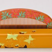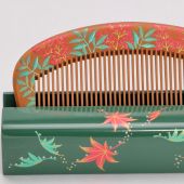 近年は「仏壇以外にも蒔絵を描いて下さい」の勧めもあり、櫛、櫛置き台、ぐい呑みグラス、ワインタンブラー、ピアス、イヤリング等に蒔絵を描いています。